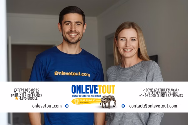 3 options : Téléphone 01 49 95 05 50, WhatsApp 01 83 64 43 45, ou formulaire onlevetout.com/devis-en-ligne. Expert sous 24-48h.
