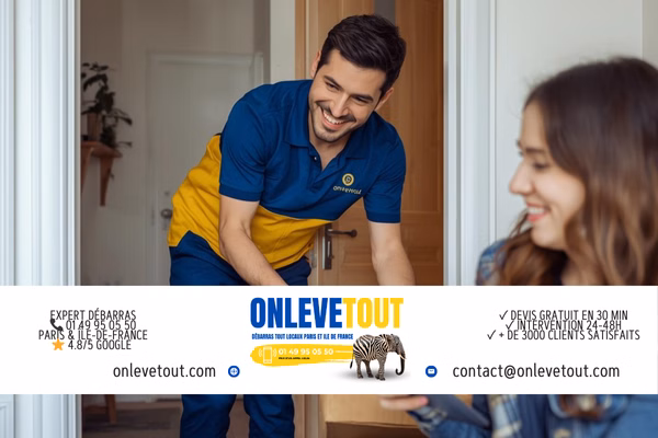 3 options : Téléphone 01 49 95 05 50, WhatsApp 01 83 64 43 45, ou formulaire onlevetout.com/devis-en-ligne. Expert sous 24-48h.