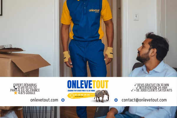 3 options : 1. Téléphone 01 49 95 05 50 (lun-sam 7h-20h, dim 9h-18h). 2. WhatsApp 01 83 64 43 45 (photos + description). 3. Formulaire onlevetout.com/devis-en-ligne. Expert sur place sous 24h. Devis gratuit, valable 30 jours.